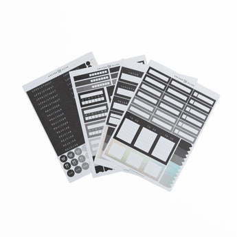 - Includes: 4 sheets of planning stickers (labels, headers, icons, boxes)