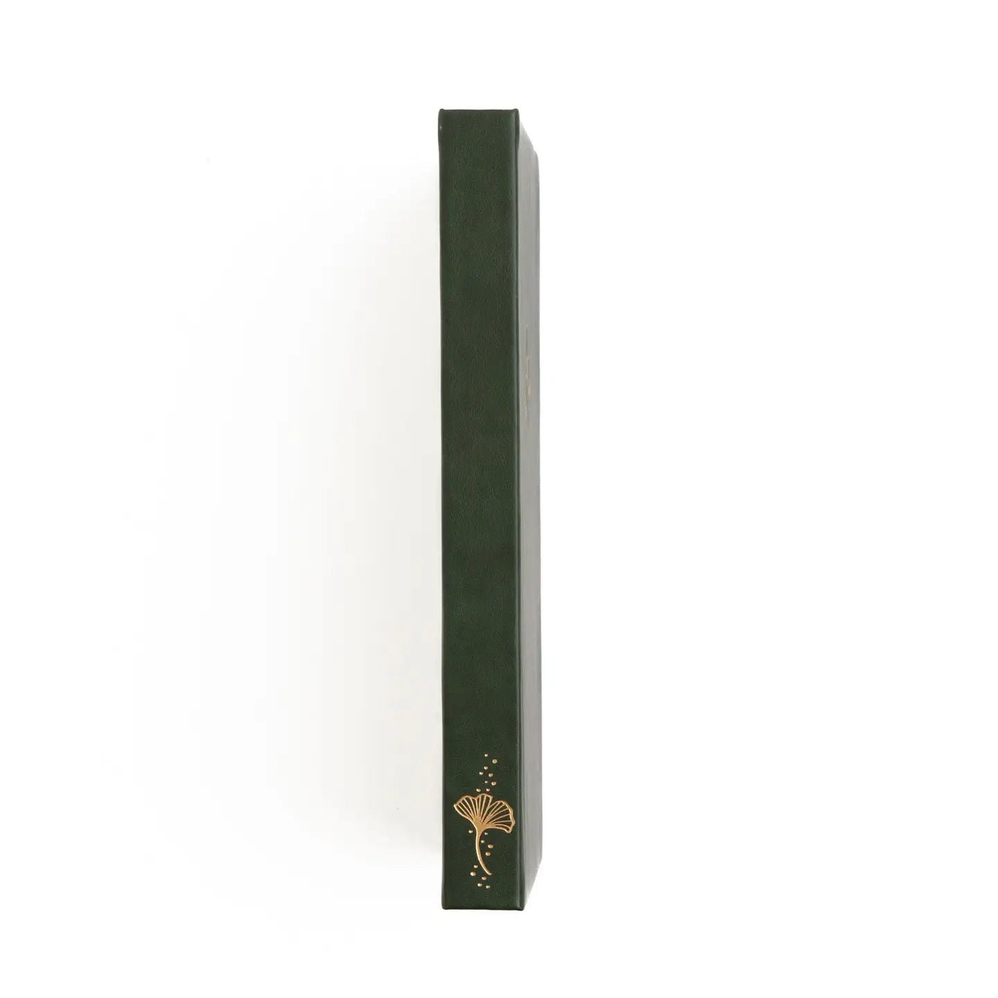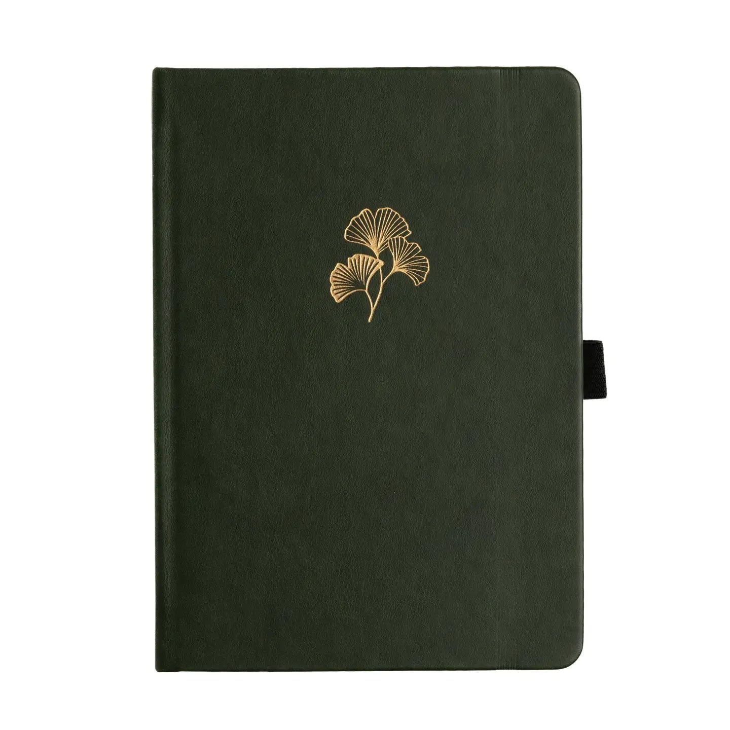 A minimalist collector’s piece from Archer and Olive, designed for lovers of art journals, bullet journaling, and creative sketchbooks. This A5 notebook features a deep green vegan leather cover with an elegant gold foil-stamped ginkgo motif. Inside are 192 ultra-thick dot grid pages—perfect for sketching, journaling, planning, and capturing inspiration with style. 🌿✨
